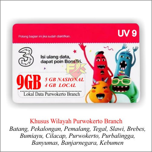 Vocer voucher tri 9gb 9 gb vbm3 lokal banten (kirim fisik).
